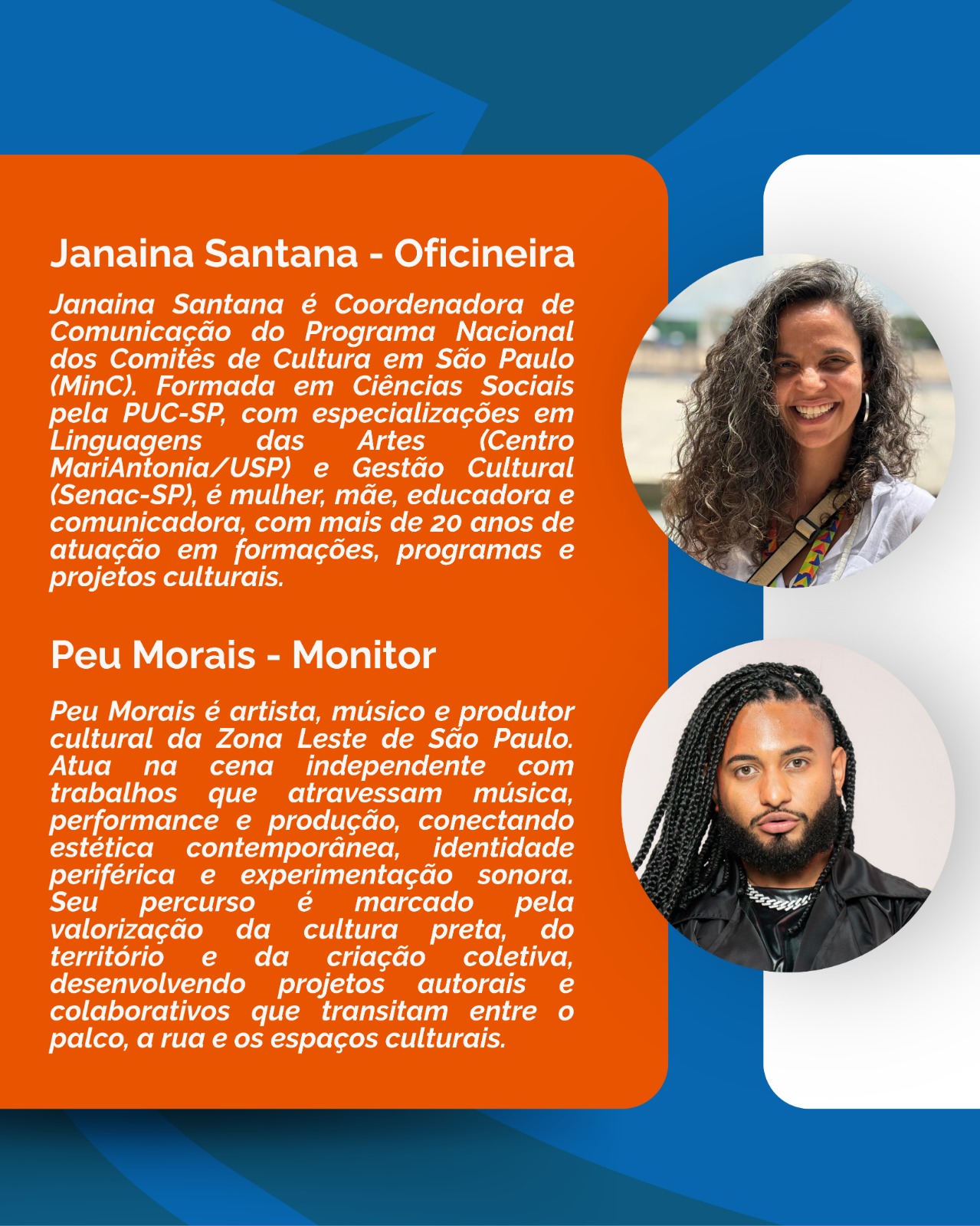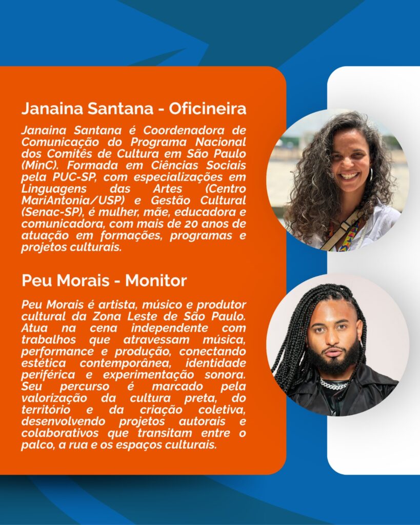 Em breve abriremos inscrições para as oficinas: Moda Afto, Graffitti e Cidades, Percussão, Mídias Digitais e Podcasts